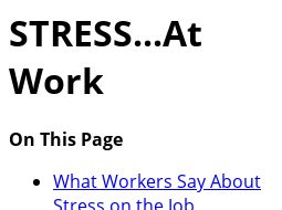 STRESS...At Work - NIOSH Publications and Products