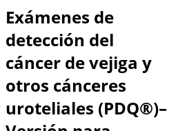 Exámenes de detección del cáncer de vejiga y otros cánceres uroteliales (PDQ®)–Versión para pacientes