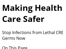 Making Health Care Safer: Stop Infections from Lethal CRE Germs Now - CDC Vital Signs
